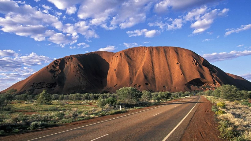 Прямая как стрела дорога через красную пустыню Северной Территории ведет к священной скале аборигенов — Улуру (Айерс-Рок). 450 километров абсолютно ровной трассы среди бескрайних красных песков, где можно не встретить ни одной машины. Гигантская скала появляется на горизонте за десятки километров и постепенно вырастает до своих настоящих размеров — 348 метров в высоту. На закате Улуру меняет цвет от оранжевого до багрового — завораживающее зрелище посреди пустыни.