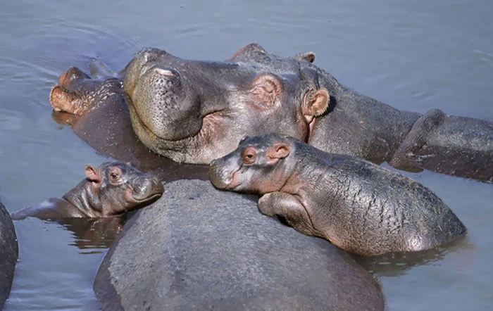 По объему тела бегемот уступает лишь двум млекопитающим: слону и белому носорогу. А кто является его ближайшими родственниками, вы ни за что не догадаетесь. Дельфины и киты.