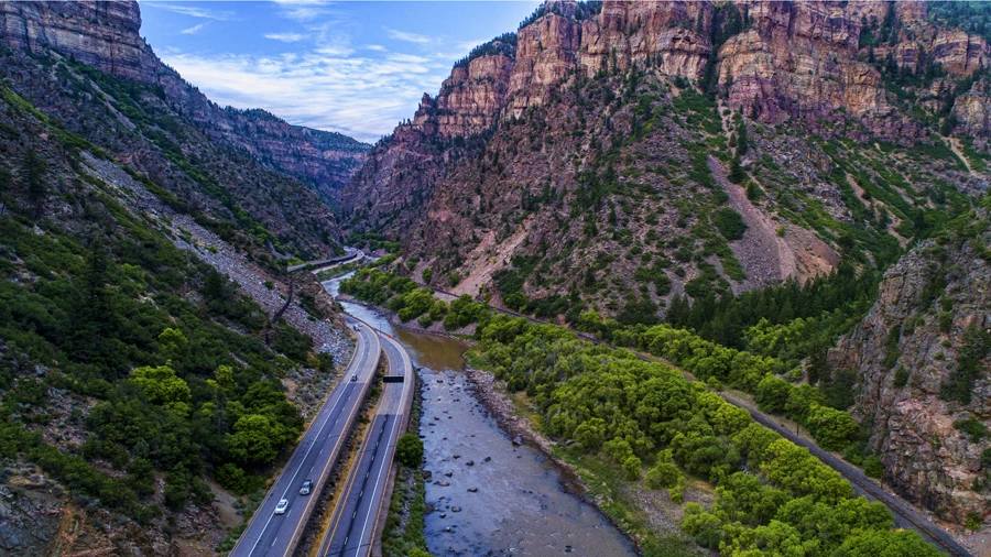 Дорога через каньон Гленвуд в Скалистых горах — это 20 километров захватывающих видов вдоль реки Колорадо. Трасса проложена прямо в скале на высоте сотен метров над бурлящей водой. Весной и летом склоны каньона покрыты дикими цветами, а осенью здесь буйствуют золотые краски осин. По пути встречаются горячие источники, где можно остановиться и расслабиться после долгой дороги.