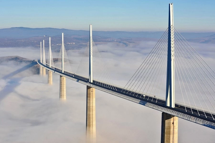 Самый высокий автомобильный мост в мире буквально парит над долиной реки Тарн на юге Франции. Высота опор достигает 343 метров — это выше Эйфелевой башни! Проезжая по мосту, создается ощущение полета над облаками, особенно когда долину затягивает утренний туман. Конструкция моста настолько изящна, что больше похожа на произведение искусства, чем на инженерное сооружение.