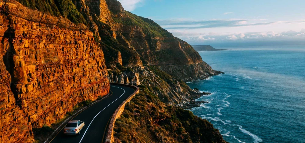 Девять километров серпантина между Хаут-Бей и Нордхуком в Кейптауне — одна из самых живописных прибрежных дорог планеты. Трасса вырублена прямо в скале на высоте 600 метров над Атлантическим океаном. 114 поворотов, головокружительные виды на океан и встречи с бабуинами, которые тут как дома. На закате дорога превращается в золотую ленту, повисшую между небом и морем.