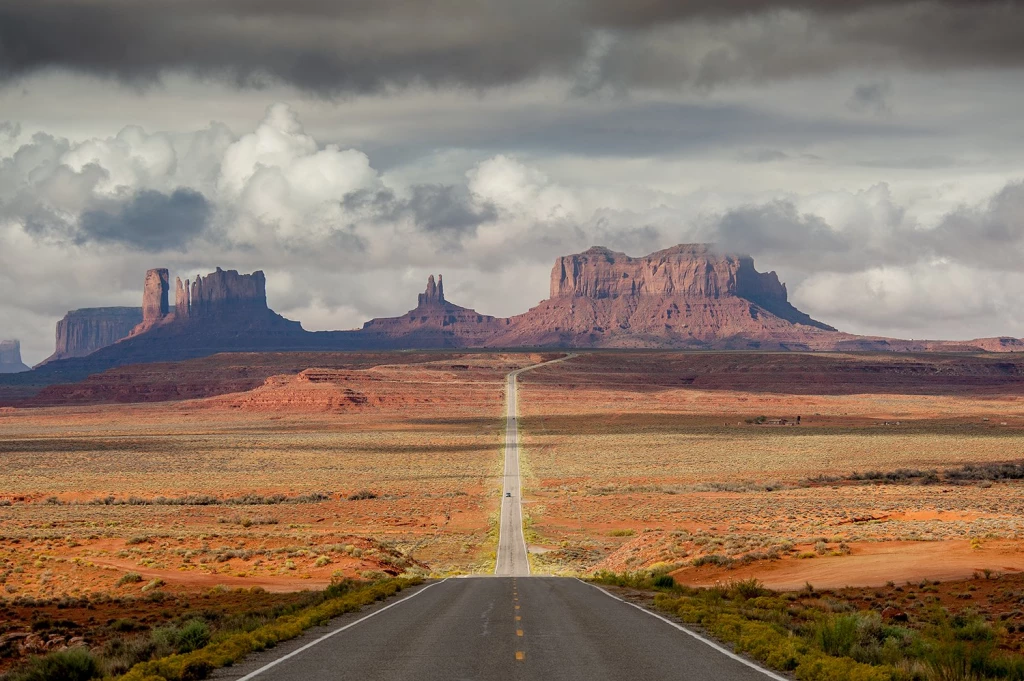 Знаменитая дорога через Долину Монументов на границе Аризоны и Юты — это классика американского вестерна. Прямое как стрела шоссе упирается в красные скалы-останцы высотой до 300 метров. Именно здесь снимали культовые сцены погонь из десятков фильмов. Дорога проходит через земли индейцев навахо, и весь ландшафт пропитан духом Дикого Запада.