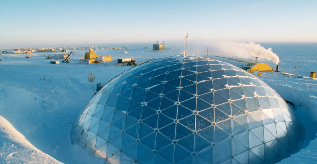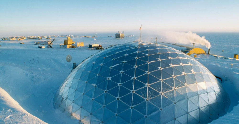 Антарктическая станция Амундсен-Скотт находится в самой южной точке Земли. Этот научно-исследовательский центр соорудили в 1956 году, но с тех пор перестраивали, поскольку любое сооружение на Южном полюсе заносится снегом.