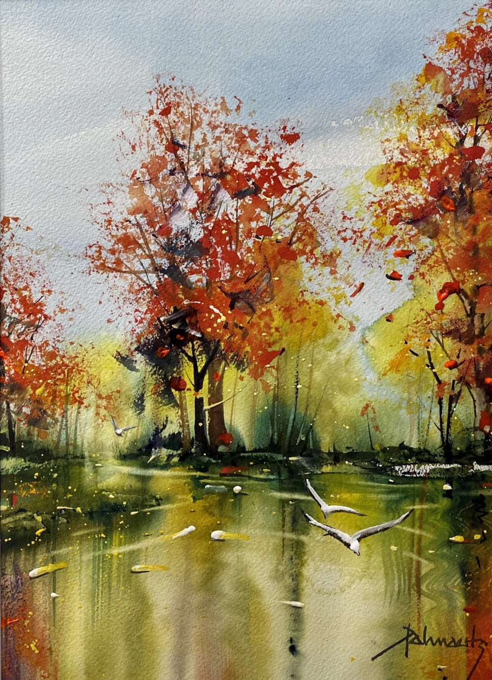 Художник Роланд Пальмаертс. Осень акварельюОсень — пожалуй, самое благодарное время года для акварели. Листья сами становятся палитрой: золото, охра, рубиновый красный, изумруд и багровый, — стоит только коснуться бумаги кистью. Именно в это время особенно ярко проявляется талант бельгийского акварелиста Роланда Пальмаертса (Roland Palmaerts). РЕКЛАМА Его работы — это не просто пейзажи, а настоящее осеннее настроение. Лёгкость мазка передаёт прозрачный воздух, влажность утреннего тумана и хрупкость падающих листьев. Пальмаертс умеет делать то, что под силу лишь мастерам акварели: создавать свет, который будто струится изнутри картины. Художник известен не только своими работами, но и как педагог: он проводит мастер-классы по всему миру и показывает, что акварель — это не хрупкая техника «для открыток», а мощный инструмент, который способен захватить масштабные темы и яркие эмоции. РЕКЛАМА Осень у Пальмаертса всегда разная: то задумчивая и тихая, то пылающая и праздничная. Но в каждой работе чувствуется восторг перед красотой природы и умение поймать её в несколько прозрачных мазков. РЕКЛАМА Художник Роланд Палмаэртс (Roland Palmaerts) родился в Брюсселе, в 1953 году, в семье потомственных художников. А потому не удивительно, что уже в возрасте шести лет Roland Palmaerts участвует в первом своём конкурсе и занимает первое место. После окончания средней школы Роланд Палмаэртс поступил в брюссельскую Королевскую Академию Искусств, потом служил в армии, в бельгийских силах специального назначения. После службы в армии, в возрасте 27 лет, Roland Palmaerts эмигрировал в Канаду, работал дизайнером и иллюстратором, занимался рекламой, а в свободное время писал картины, чтобы в 1984 году провести свою первую персональную выставку. На сегодняшний день Roland Palmaerts провёл более ста выставок, участвует в популярных телешоу, пишет книги о живописи. И пишет. Пишет маслом и акрилом, в смешанной технике. Однако, акварель доминирует и побеждает. Как первая и самая большая любовь.