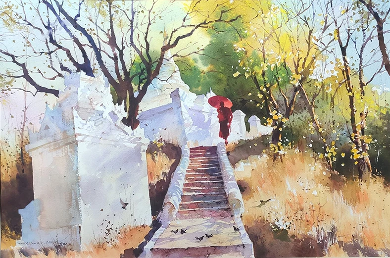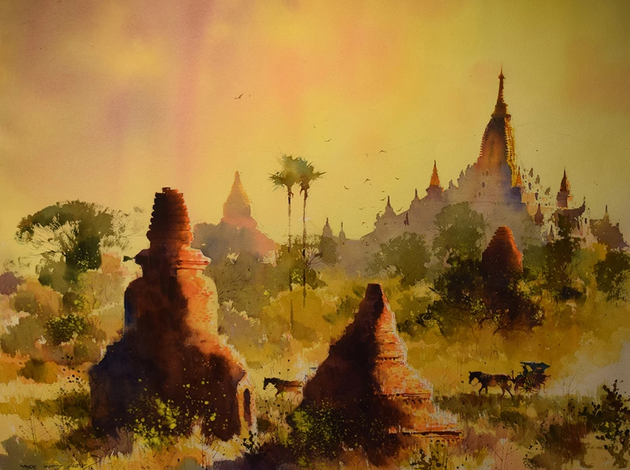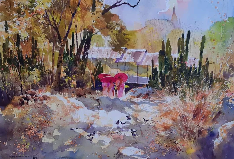 Современная восточная акварель от художника Myoe Win AungРаботы восточного акварелиста Myoe Win Aung переносят зрителя в атмосферу его родной страны. В его картинах ощущаются дыхание культуры, история и самобытность народа. Художник с редкой полнотой и любовью изображает родные пейзажи и людей, создавая живое, поэтичное отражение своей земли. РЕКЛАМА Художник Myoe Win Aung родился в Мьянме, в столице Янгон, в 1972 году. Начал рисовать в 1989-ом. Далее поступил на обучение в государственную школу изобразительных искусств в Янгоне, в класс живописи. Учился сразу у нескольких мастеров. Закончил обучение в 1992 году. Как и в случае большинства художников Мьянмы, на его художественный вкус и выражение очень повлияла религиозная жизнь родной страны, буддизм. РЕКЛАМА РЕКЛАМА