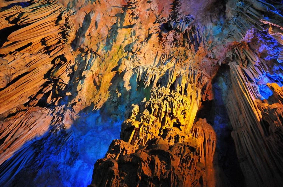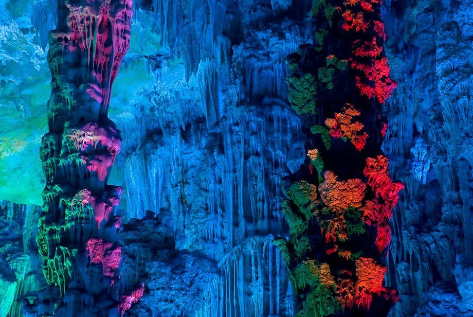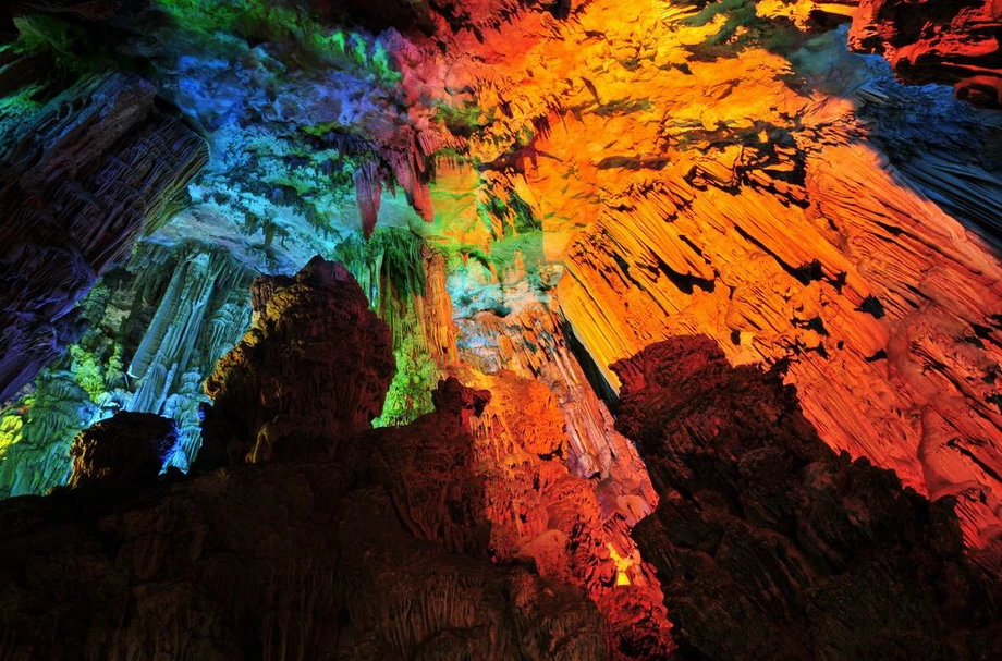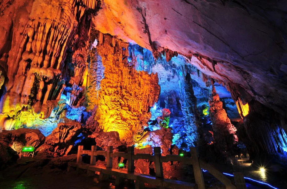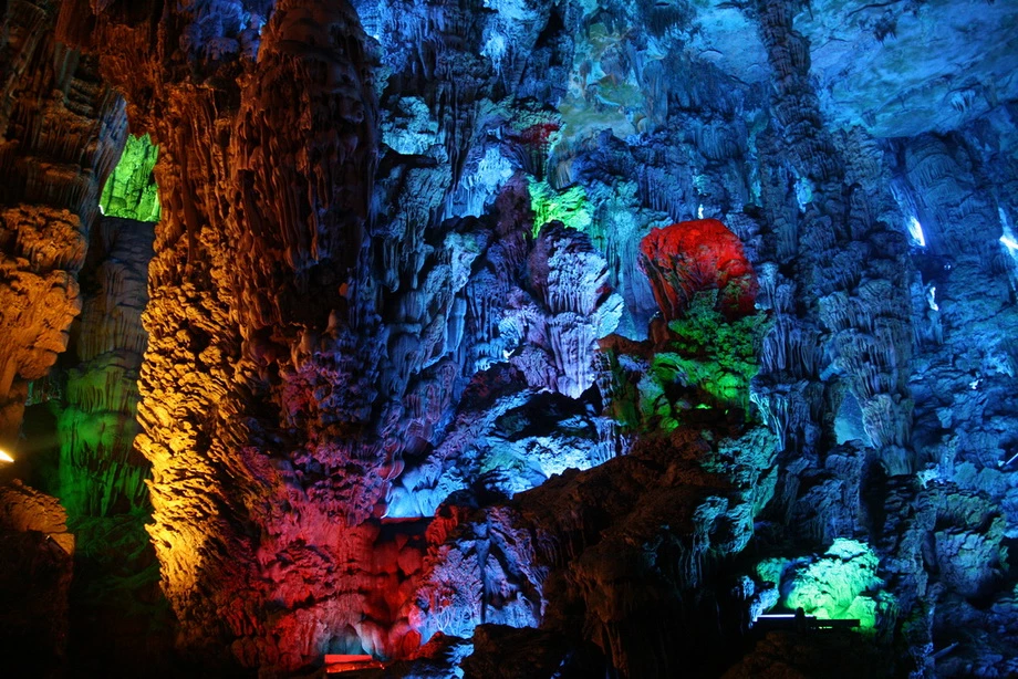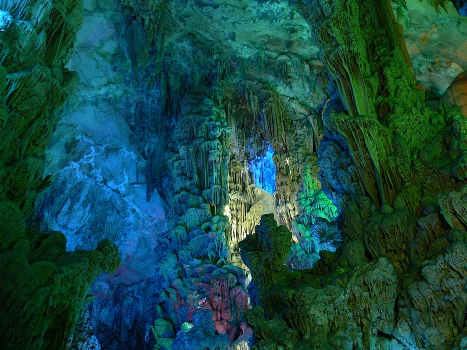 Живописная карстовая пещера Тростниковой флейтыПещера Тростниковой Флейты является самой крупной и живописной из карстовых пещер в китайском туристическом городе Гуйлине. Но красочное название этой древней пещеры — ничто по сравнению с красотами ее залов. РЕКЛАМА Гуйлинь – древний живописный город, расположенный на юге Китая. Сами китайцы называют Гуйлинь самым красивым городом в Поднебесной. Гуйлинь — давно зарекомендовал себя туристическим центром благодаря чудесной природе. РЕКЛАМА Когда-то на этом месте был океан. Природные катаклизмы заставили воду уйти, подняв на поверхность фантастические горы с диковинными ущельями, расселинами, гротами и пещерами. На северо-западе, в семи километрах от центра города находится гора Гуанминшань, на южном склоне которой примостилась скала «Камышовая флейта». В этой скале есть уникальная пещера, называемая Пещерой тростниковых флейт (Reed flute cave). РЕКЛАМА Пещера Тростниковой Флейты, входящая в систему пещер и тоннелей со множеством хрупких сталактитов и сталагмитов, одна из наиболее известных пещер. Эта карстовая пещера уходит в глубину на 240 метров и первые туристы ее посетили… 1300 лет назад. Пещере дано очень меткое название: со свода свешиваются сотни маленьких сталактитов, многие из которых напоминают тоненькие дудочки. Пещера получила своё название благодаря зарослям бамбука, покрывающем окрестности холма. Бамбук с этого места местные жители использовали для производства музыкального инструмента - флейты. Протяженность маршрута составляет почти 500 метров, на поворотах которого открываются захватывающие картины причудливых образований сталактитов и сталагмитов, нагромождений горных образований и каменных столбов. Во время экскурсии, которая длится час движение внутри пещеры происходит по U - образной кривой. Подсвеченные сталактиты образуют картины, по китайской традиции поэтично названные в духе 'хрустальный дворец короля драконов'. Благодаря уникальной подсветке и отражению в подземном озере, — создается впечатление застывших действ, которые имеют по китайской традиции поэтичные названия: «Хрустальный Дворец», «Башня Дракона», «Сосна на снегу», «Заря в Львиной роще», «Красный порог» и так далее. Пещера образовалась вследствие разрушения кварцевых пород водой. Образно пещеру называют дворцом природы, воображение дорисовывает павильоны, величественные дворцовые палаты и райские сады с парками. Ходит легенда, что открыли пещеру благодаря крестьянину, который бродил в этих окрестностях и провалился в расселину. Она и оказалась входом в пещеру. Очевидно, что сейчас пещера имеет совершенно другой вид нежели в те времена, когда ее впервые посетил человек: теперь сталактиты и сталагмиты переливаются разнообразными оттенками благодаря яркой подсветке. Постепенно пещера флейты стала популярным туристическим аттракционом. Внутри пещера разделена на несколько сказочных залов. В одном из них есть озеро, одно из прекраснейших подземных в мире. К досаде многочисленных туристов запечатлеть здешнюю красоту совсем непросто: без специального оборудования фотографии не получится несмотря на проведенную подсветку. Пещера Флейты огромна, заблудиться здесь не составит труда. Во время экскурсии тут можно встретить много удивительных камней, которые напоминают очертания 