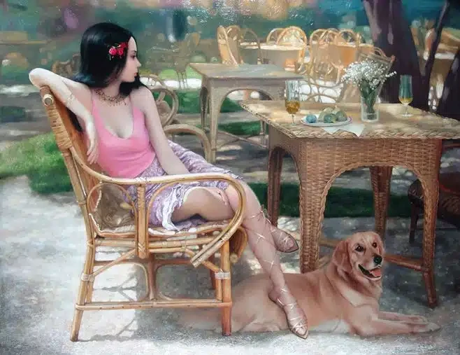 Беличенко работает в стиле портретно-фигуративной живописи, уделяя большое внимание деталям, реалистичности и индивидуальному выражению своих персонажей.