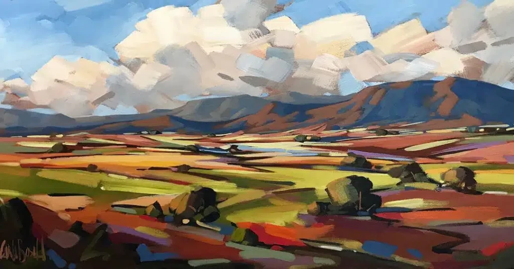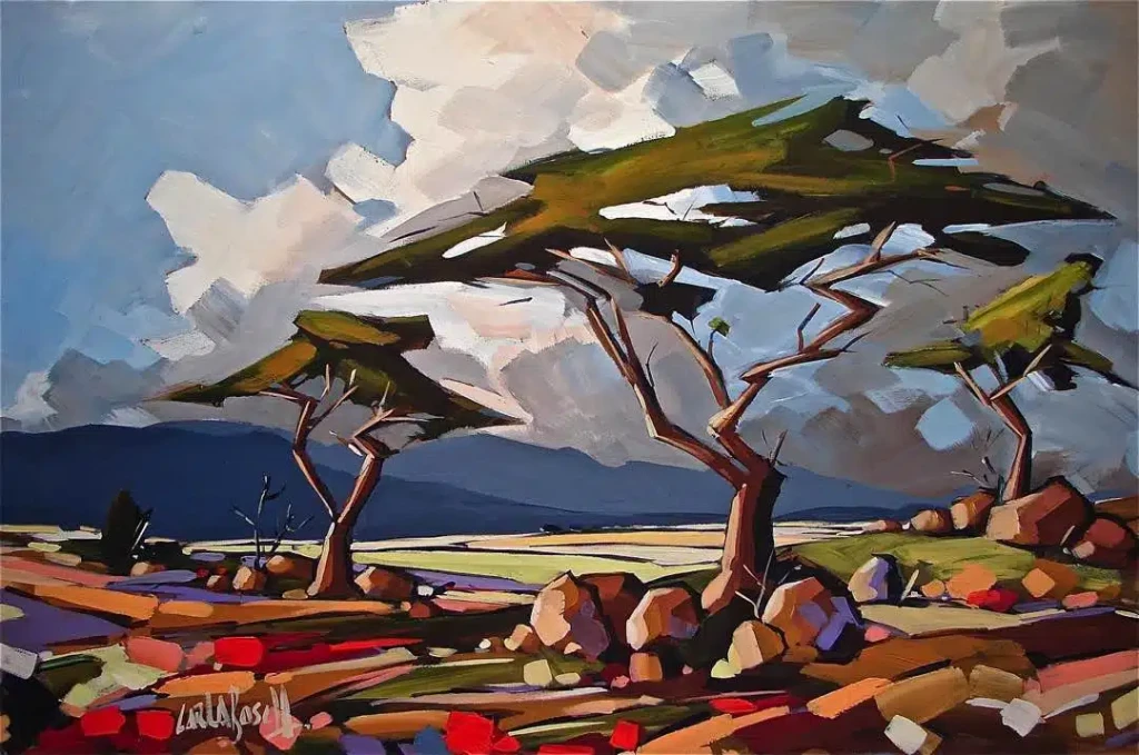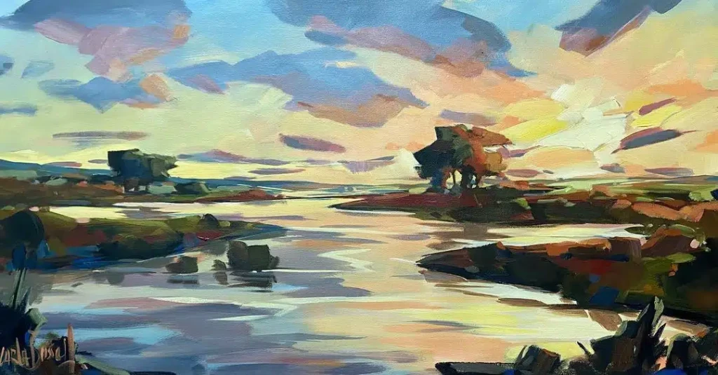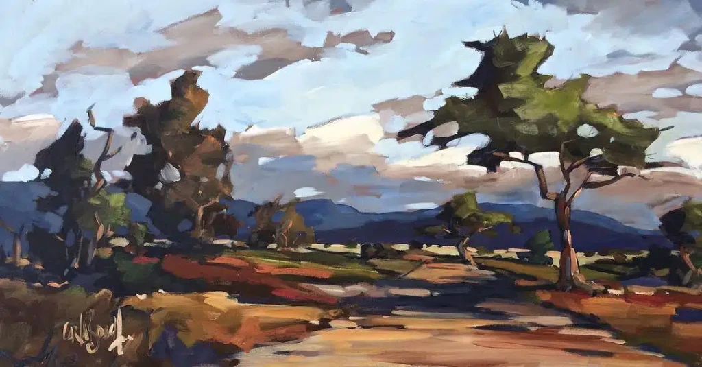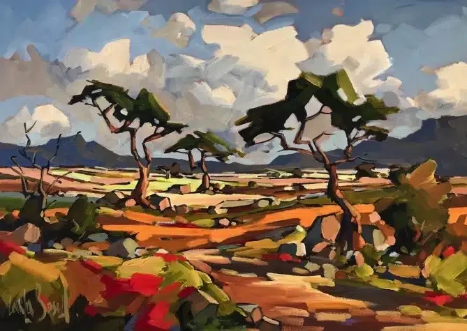 «В Южной Африке мне приходилось гораздо больше работать в студии. Но в этом было и преимущество — это заставляло меня работать по памяти и черпать из своих эмоций при создании картин. Этот процесс позволил мне быть немного смелее с моим подходом, и я научилась создавать пейзажные картины без прямых ссылок”.