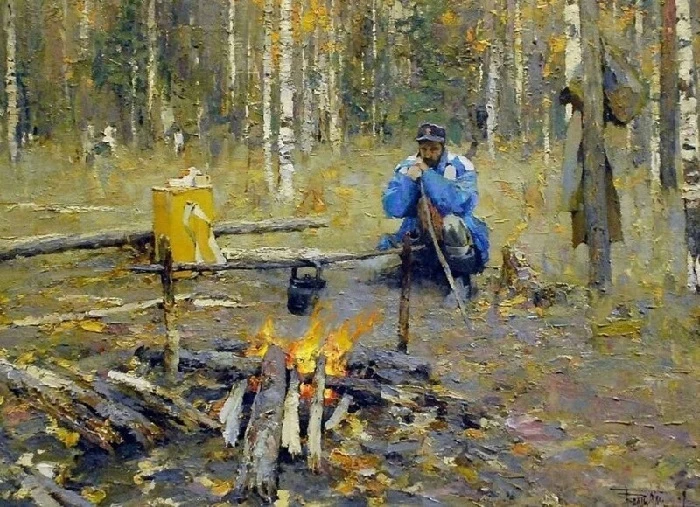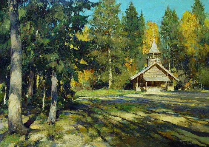 Несмотря на устойчивую преданность лесным сюжетам, ему остаются интересны захолустные дворики "Старого Архангельска", поморские баркасы на Соломбалке и ветхие "двухэтажки" поселка Гидролизного завода.