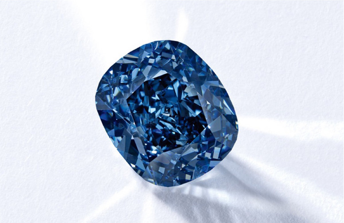 Редчайший синий бриллиант «Голубая луна», имеющий форму «овальный кушон», установил мировой рекорд стоимости для синих камней. Он был огранен из алмаза весом 29,60 карат, найденного в Южной Африке на шахте "Куллинан" в 2014 году. Огранка камня длилась около полугода. Что любопытно, внутренние несовершенства этого камня не видны даже в лупу с десятикратным увеличением. Бриллиант имеет интенсивно голубой цвет, который эксперты называют «ярко фантазийный голубой» — это высшая оценка цвета.