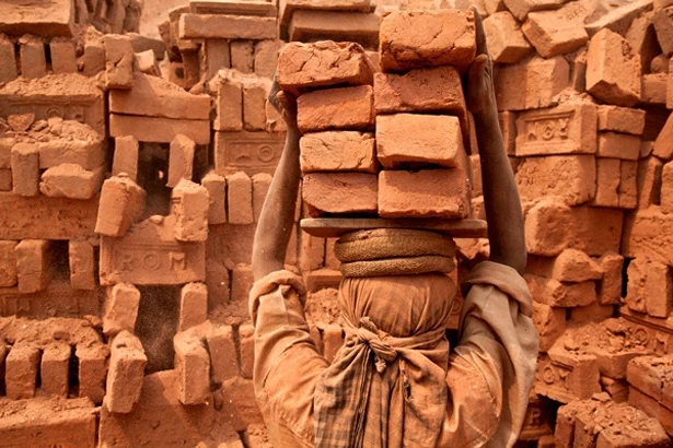 Brickies Labourer carrying 22 bricks, Bangladesh